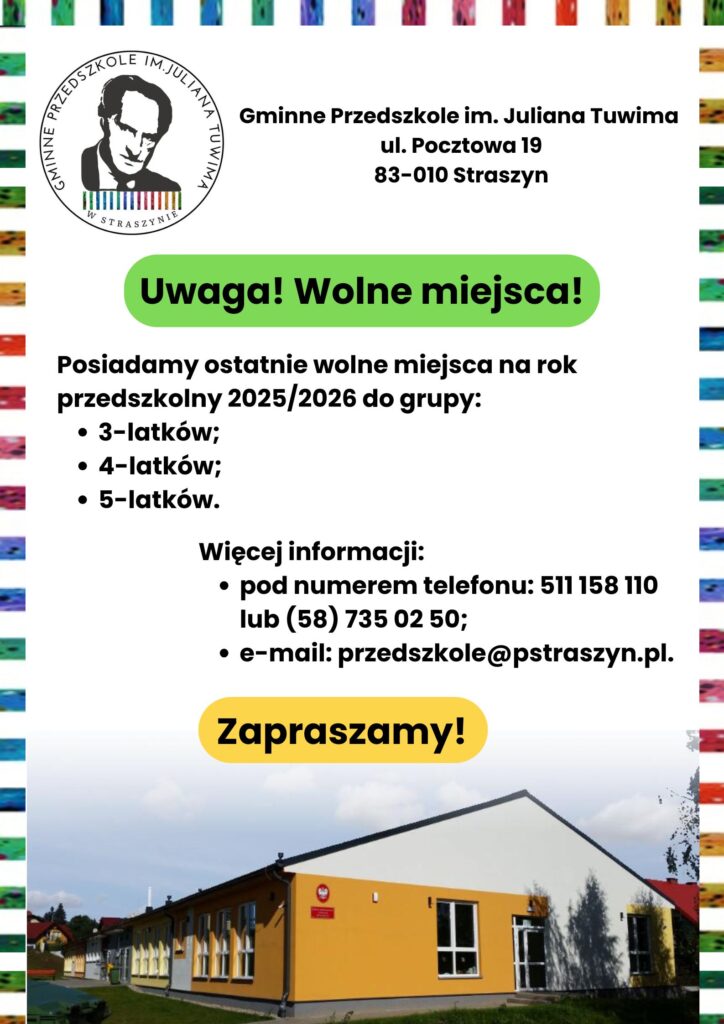 Drodzy Rodzice, Od dnia 9.02.2026 r. rozpoczynamy rekrutację do Naszego Przedszkola. Szczegółowe informacje pojawią się jutro na stronie naszego przedszkola (pstraszyn.pl) oraz na naszym FB.